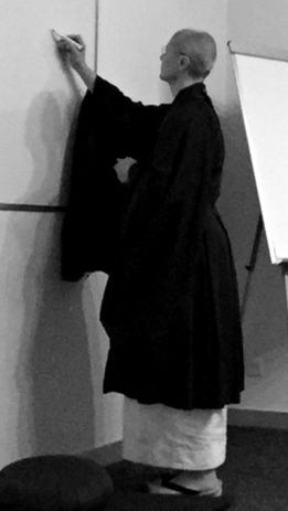 Practitioners are invited into zendō by sound of the wooden han 板, a solid wooden board hunging by the front door. In traditional sōtō shū monasteries, when the sound of the han is heard, the monks know it is time for zazen practice or dharma talk, and they head to the zendō.